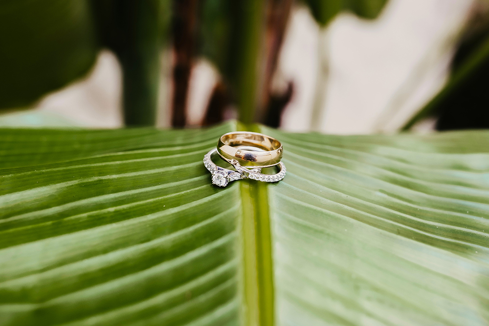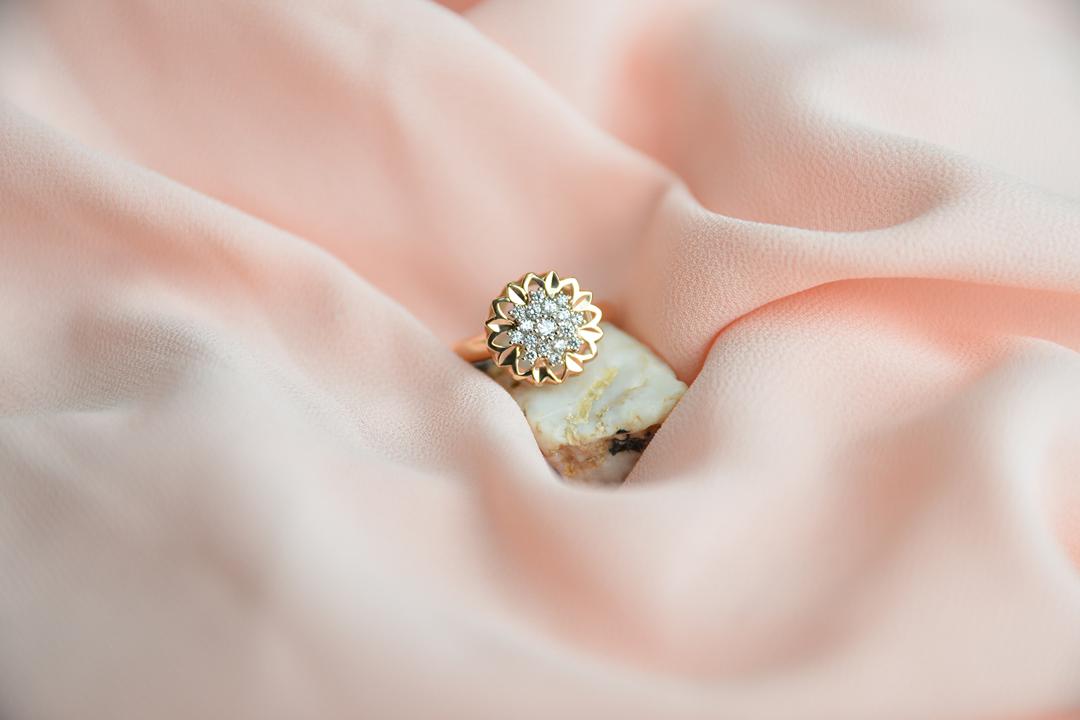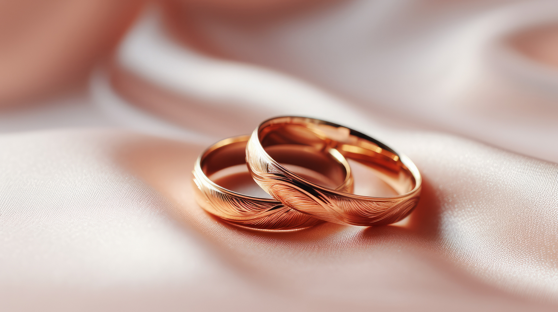 gold wedding rings and a place for text. marriage Peach Fuzz background. copy space.