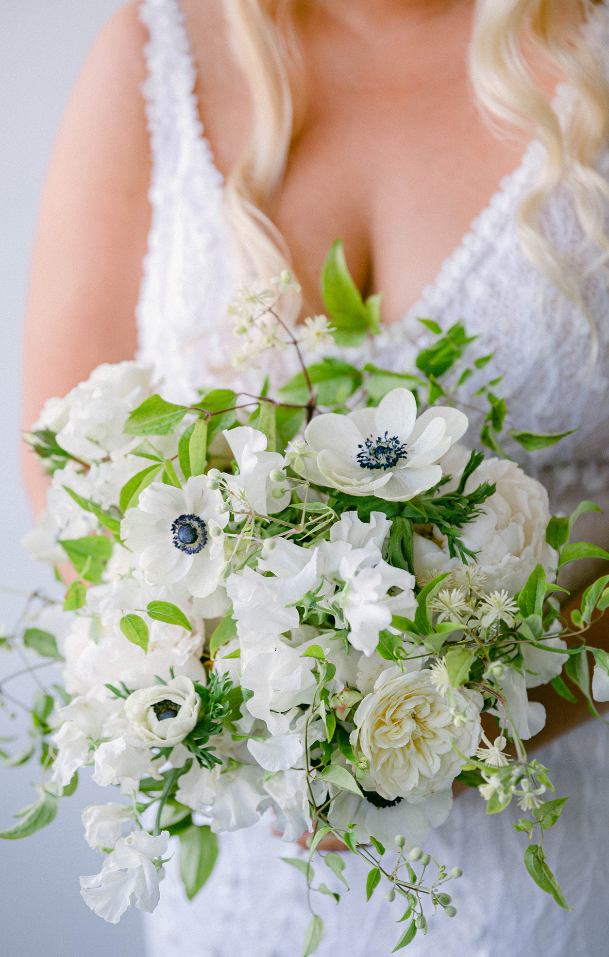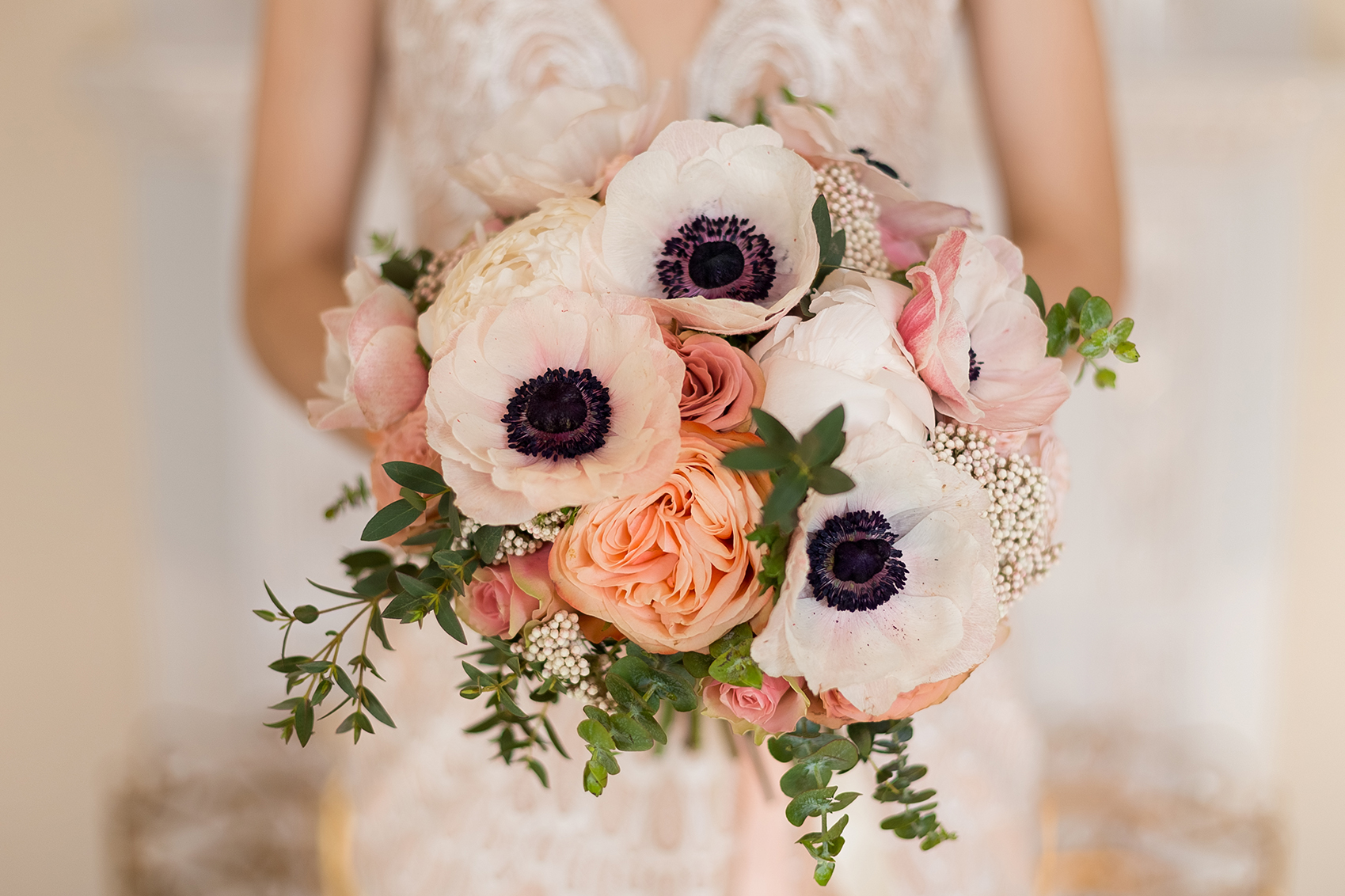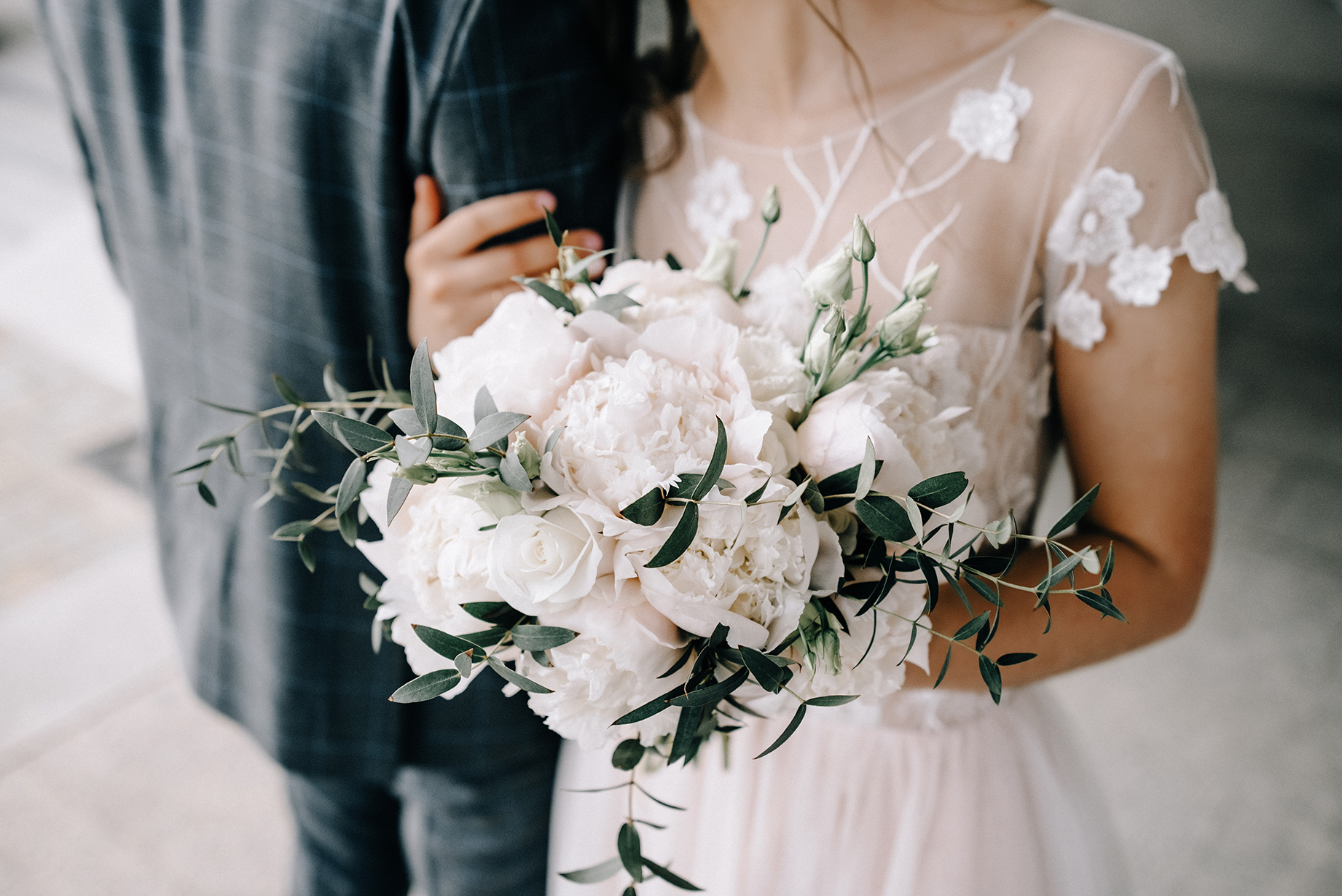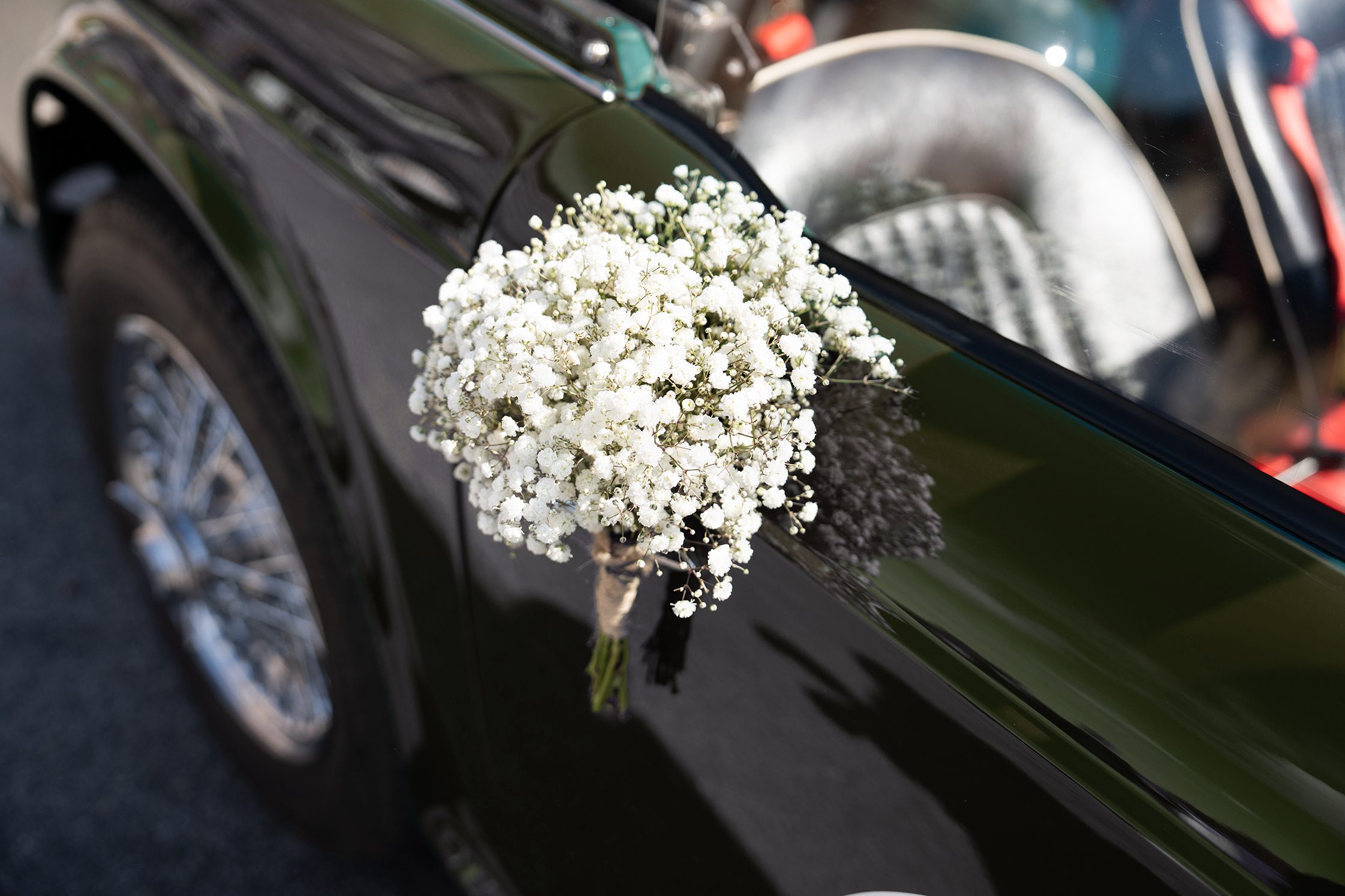 Convertible with a bouquet of gypsophila as decoration for a wedding
