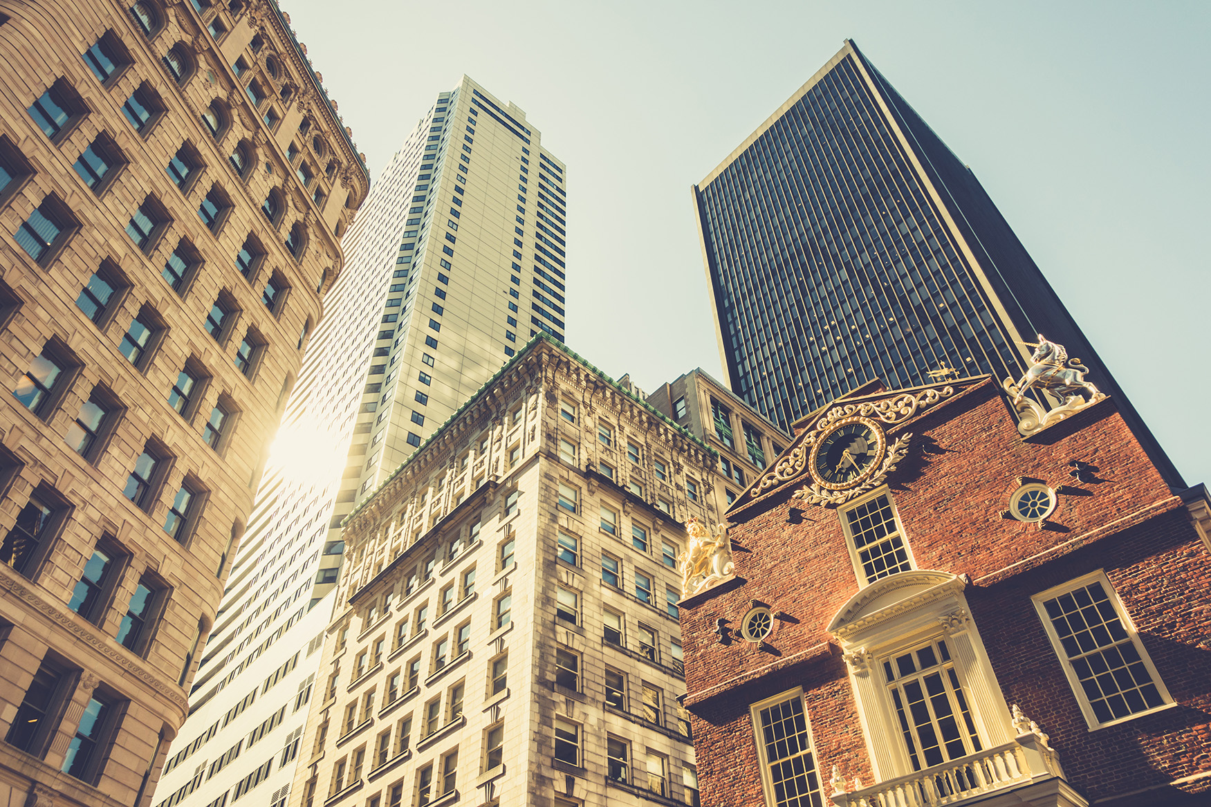 Boston, USA - 11 October, 2016: Cityscape of skyscrapers and old buildings.